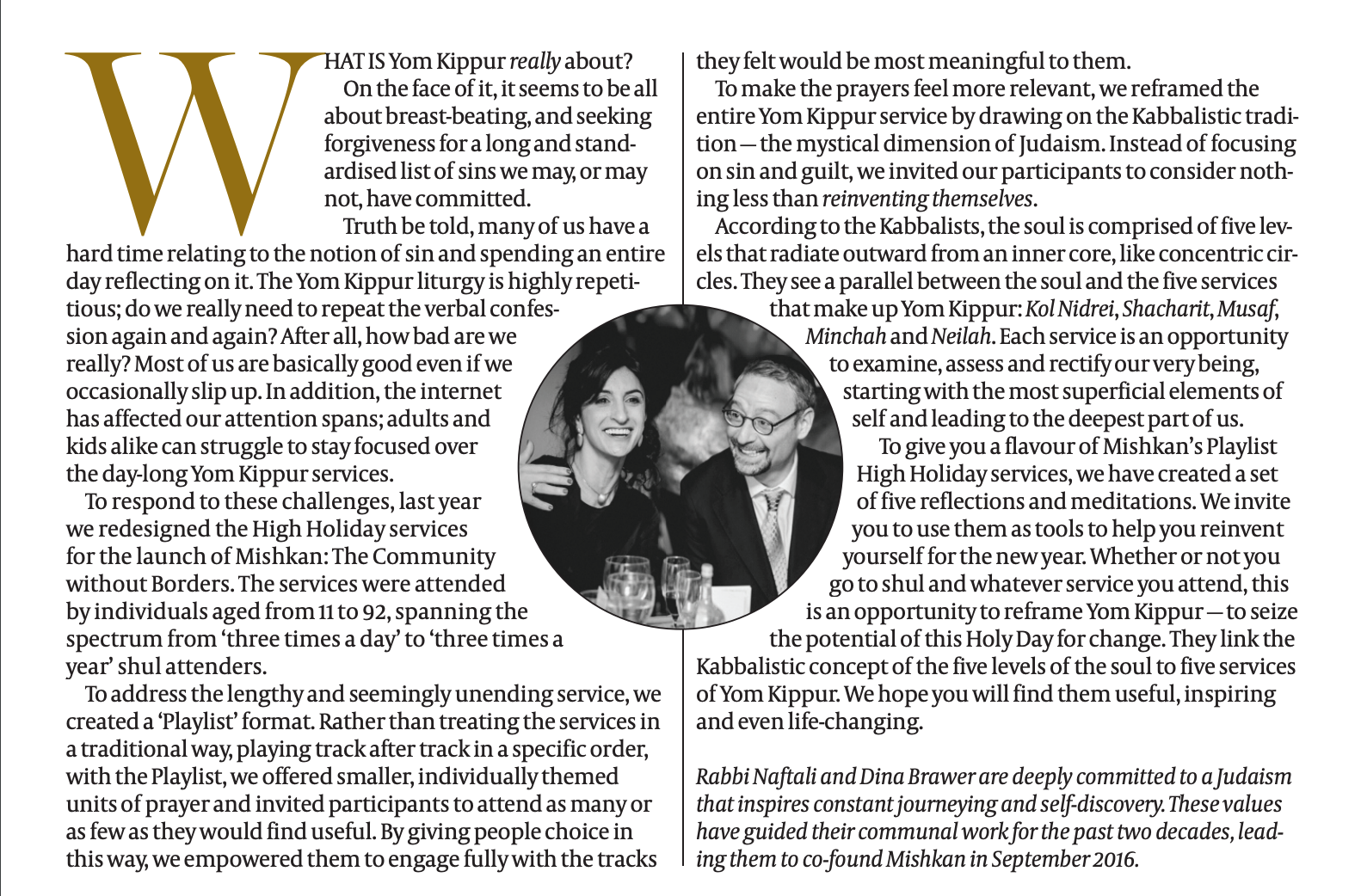 This year we are re-sharing the five point guide to Yom Kippur we developed and used as a template for Mishkan’s service. We heard from participants that this was useful way to focus their synagogue experience, and that they kept the guide and returned to it in following years.